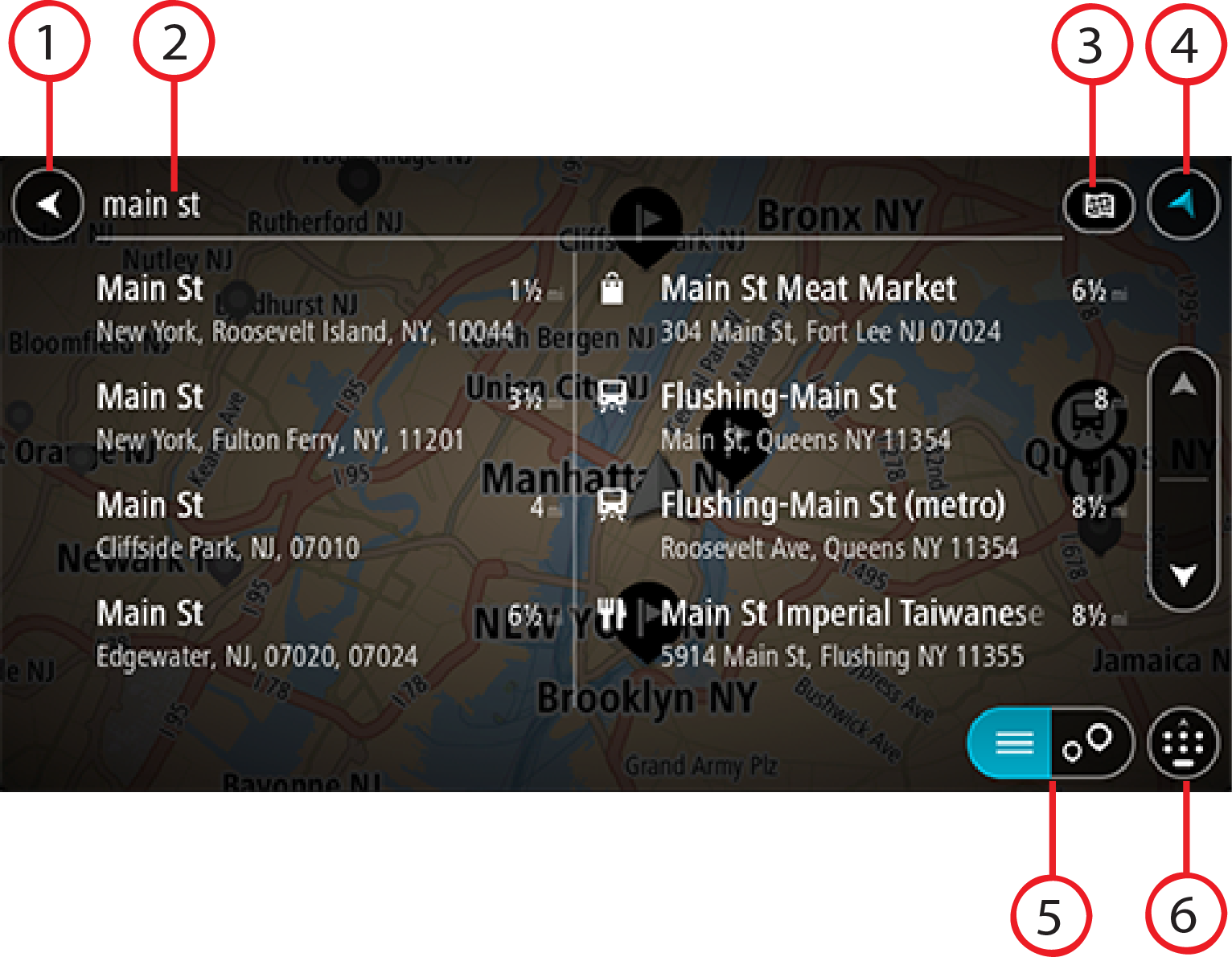 Dica: para cancelar uma pesquisa, selecione o botão Visualização de mapa/orientação no canto superior direito da tela.