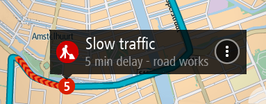 La barra del percorso segnala eventuali ritardi dovuti al traffico mentre guidi, mediante simboli che identificano il punto in cui si è verificato il problema lungo il percorso.