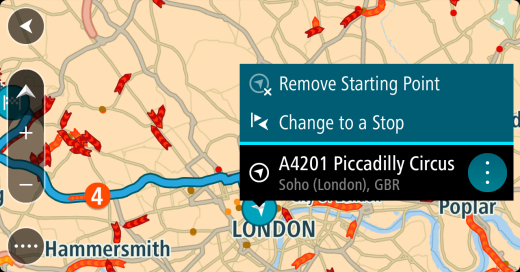 Tip: Stops, POIs, Places and the destination can all be selected as starting points using their pop-up menus.