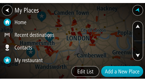 Aby nawigować do jednej z pozycji na liście Moje miejsca z aktualnej pozycji, wykonaj następujące czynności: