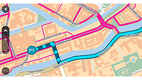 Jeśli wybrany typ pojazdu to „Autobus” lub „Ciężarówka”, ograniczenia dotyczące trasy są wyświetlane w widoku nawigacji podczas jazdy oraz w widoku mapy po zaplanowaniu trasy. W widoku mapy należy przybliżyć mapę, aby zobaczyć drogi z ograniczeniami.