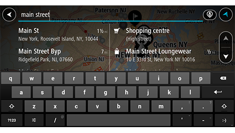 Note: When searching, the whole map is searched. If you want to change how the search is done, select the button to the right of the search box. You can then change where the search is done, for example, to being along the route or in a city.