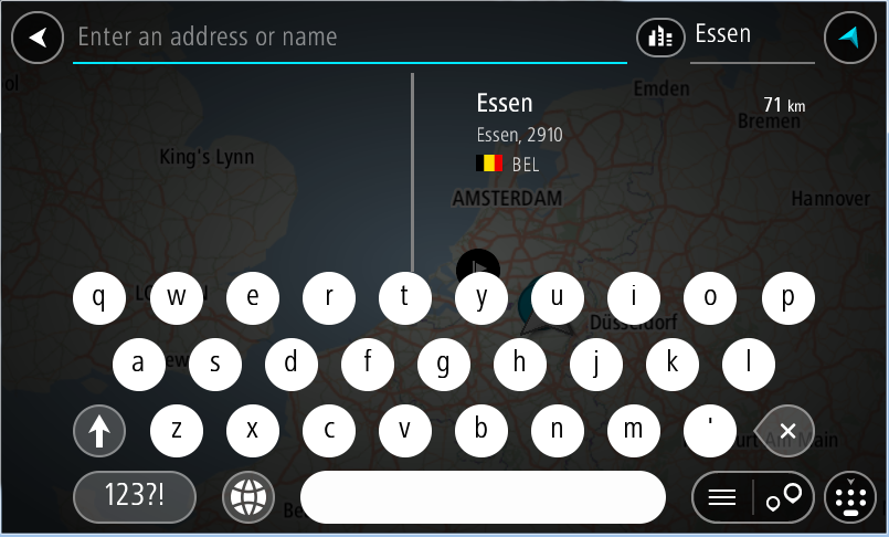 Tip: Na vyhľadanie konkrétneho mesta môžete zadať PSČ daného mesta alebo krajinu. Ak budete napríklad vyhľadávať mesto Essen, nájde sa množstvo výsledkov. Ak budete vyhľadávať Essen 2910 alebo Essen Belgicko, toto mesto sa zobrazí v hornej časti výsledkov. Následne môžete vyhľadávať v danom meste.