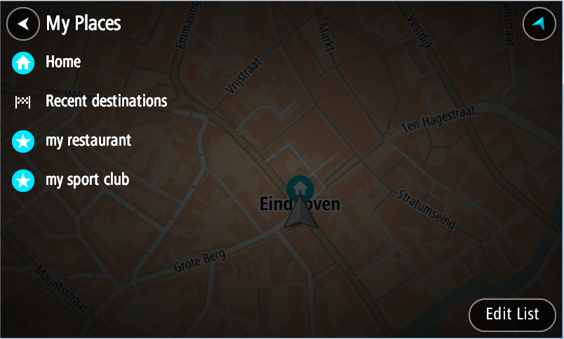 Ak chcete z aktuálneho miesta navádzať na niektoré z miest zo zoznamu Moje miesta, postupujte takto: