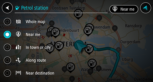 Você pode alterar a tela para exibir uma lista de postos de gasolina pressionando este botão:
