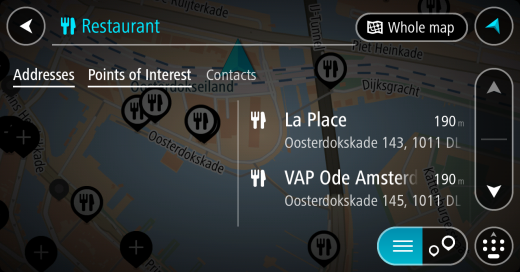 Você pode pesquisar um tipo de PI (Ponto de interesse), como um restaurante ou uma atração turística. Ou se preferir, você pode pesquisar um PI específico, por exemplo: "Rosie's Pizzeria".