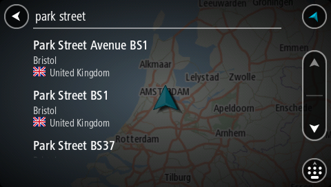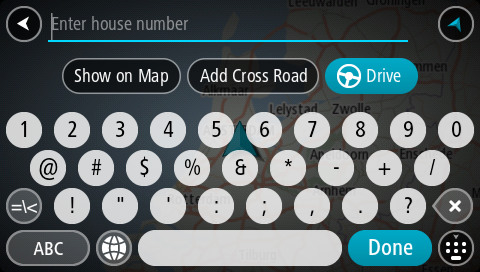 Когато изберете адрес от списъка с резултатите от търсене, можете да изберете да се покаже на картата, да се добави кръстовище или да се планира маршрут до избраното местоположение. За да получите точен адрес, можете да добавите номер на жилище. Когато изберете обект (POI) от списъка с резултати от търсене, той се показва на картата.