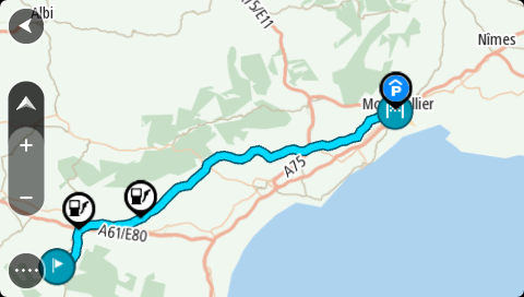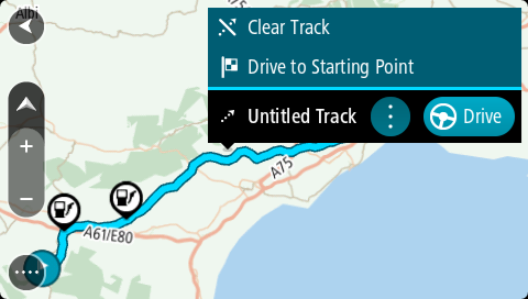 Ewentualnie wybierz opcję Jedź do punktu początkowego lub Jedź do trasy w menu aktualnej trasy.