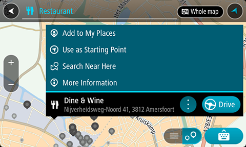 Można wyszukiwać UM-y (użyteczne miejsca) danego typu, np. restauracje czy atrakcje turystyczne. Możesz również wyszukiwać konkretne UM-y, np. ƒƒ„Pizzeria u Stacha”.