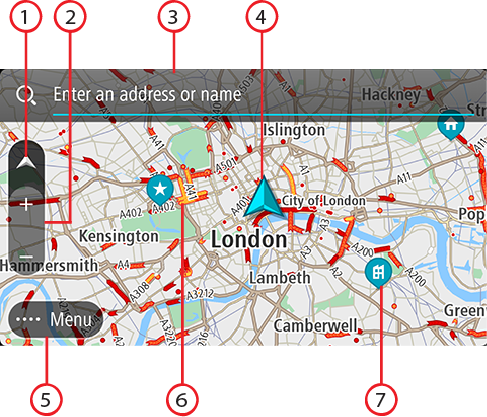 Je kunt de kaartweergave op dezelfde manier gebruiken als een traditionele papieren kaart. Je kunt de kaart verplaatsen met behulp van aanrakingen en je kunt in- of uitzoomen met de zoomknoppen.