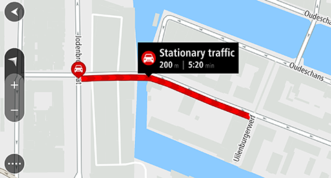 Rota çubuğu, her bir trafik olayının rotanız üzerindeki yerini göstermek üzere sembolleri kullanarak sürüş sırasında trafik gecikmelerini söyler. Harita görünümünü kullanırken ayrıca harita üzerindeki simgeleri de seçebilirsiniz.