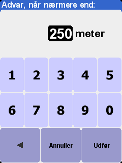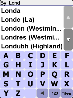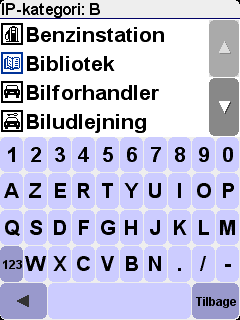 gader og yndlingssteder). Du kan indtaste bogstaver vha. hjælp af