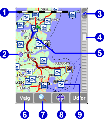 situationer. Du kan udfra din aktuelle GPS-position navigere dig frem