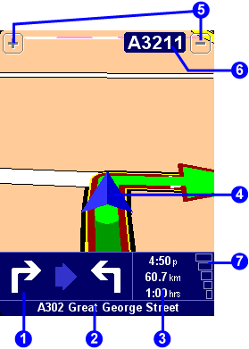 Tip: No instruction is shown or spoken at junctions that require no action. In towns and cities especially, don't be concerned that you are passing side-roads and driving through intersections without any instruction.