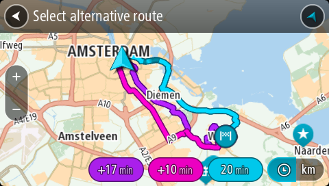 Harita görünümünde üç adede kadar alternatif rotalar gösterilir. Her bir alternatif rota, bir balon içinde seyahat süresindeki farklılıkları gösterir.