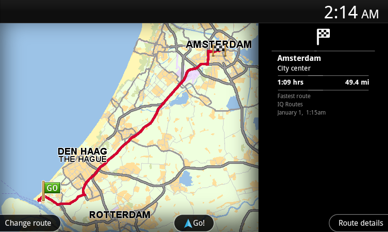 O ecrã de Resumo do percurso mostra uma visão geral do seu percurso no mapa e o tempo de viagem previsto, incluindo atrasos causados por trânsito intenso.