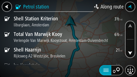 Tip: You can add a petrol station as a stop on your route by using the pop-up menu. A petrol station that is a stop on your route has a blue icon.
