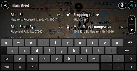 Tip: When searching, the whole map is searched. If you want to change how the search is done, select the button to the right of the search box. You can then change where the search is done, for example, to being along the route or in a city.