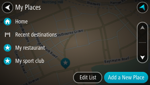 Hvis du vil navigere til et av Mine steder fra din gjeldende posisjon, gjør du følgende: