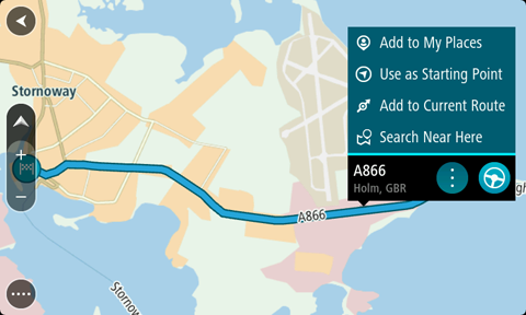 Repita los pasos de búsqueda para elegir su destino y, a continuación, seleccione Conducir en el menú emergente.