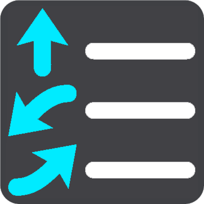 Wybierz ten przycisk, aby zobaczyć listę postojów na aktualnej trasie. Możesz wówczas zmienić kolejność postojów na trasie. W przypadku trasy bez postojów możesz również użyć tego przycisku do odwrócenia kierunku trasy. |