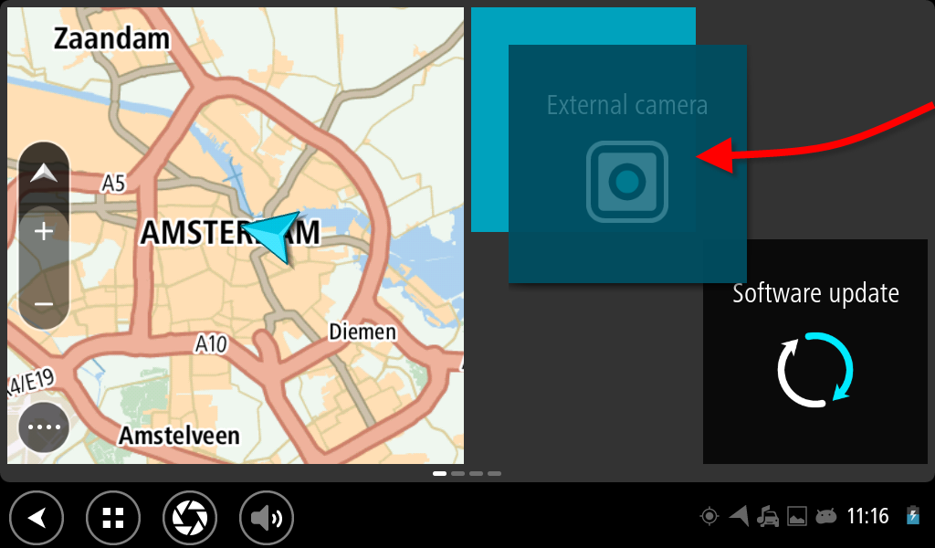 Dica: o formato que você escolhe para o aplicativo ou widget depende das informações que você deseja ver. Por exemplo, você pode escolher deixar o widget da Câmera externa com metade do tamanho da tela, para facilitar a visualização da imagem da câmera.