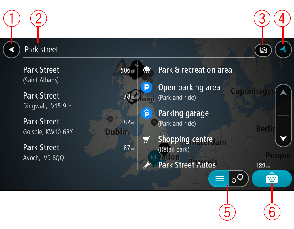Padoms. Lai atceltu meklēšanu, izvēlies kartes/virzības skatījuma pogu ekrāna augšējā labajā stūrī.