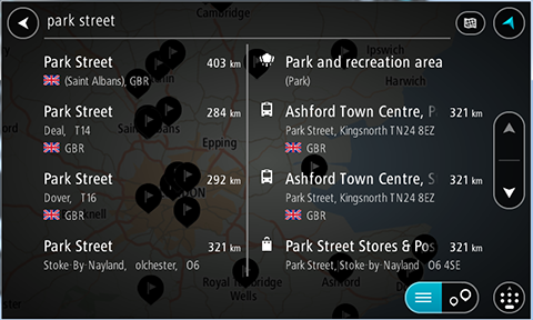 Tipp: Az eredmények térképen vagy listán való megjelenítése között a lista/térkép gomb kiválasztásával tud váltani: