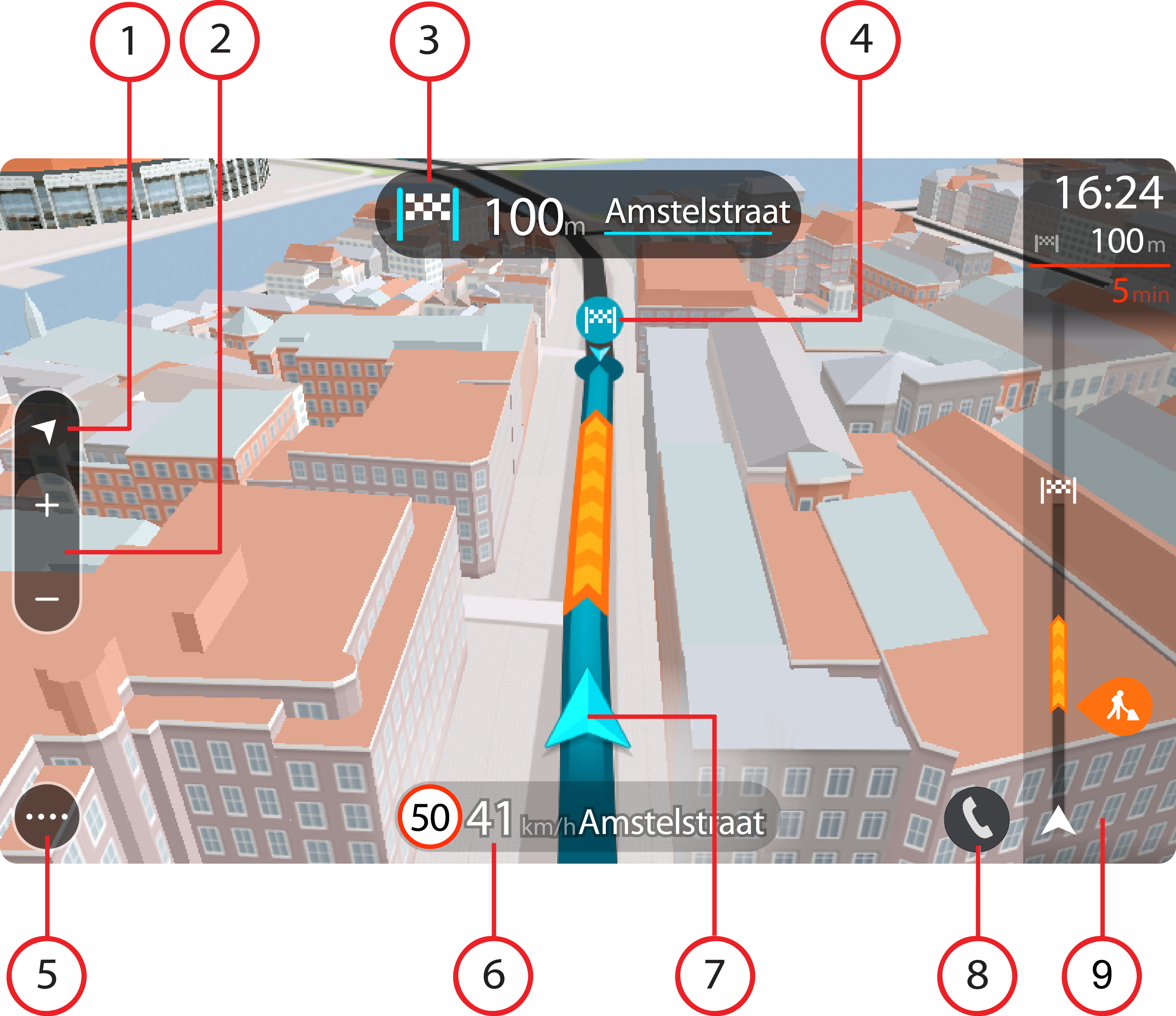 Huomautus: Opastusnäkymän 3D-rakennukset eivät ole saatavilla kaikissa navigaattoreissa.