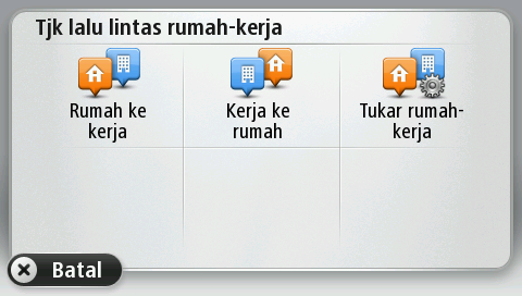 Butang Rumah ke kerja atau Kerja ke rumah di Menu lalu lintas rumah-kerja membolehkan anda menyemak laluan anda ke dan dari tempat kerja dengan satu ketikan butang.