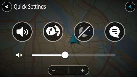 Hierdie knoppie wys dat jy gesproke instruksies sal hoor. Kies die knoppie om stemleiding af te skakel. Jy sal nie meer gesproke roete-instruksies hoor nie, maar jy sal steeds inligting soos verkeersinligting en waarskuklanke hoor. Wenk: Jy kan kies watter tipe instruksies jy wil hoor. Kies Stemme in die Instellingskieslys en kies watter instruksies jy wil hoor. |