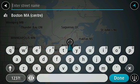 When you select an address from the list of search results, you can choose to show it on the map, add a crossroad, or plan a route to that chosen location. To get an exact address you can add the house number. When you select a POI from the list of search results, it is shown on the map.