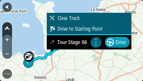 Selecione o ponto de partida do percurso. Ao abrir o menu pop-up, selecione Conduzir até ao ponto de partida.