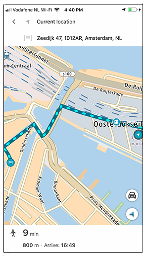 TomTom MyDrive-appen veileder deg til reisemålet med en gangrute.