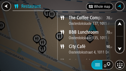 Tips: Du kan bytte mellom å se resultatene på kartet eller i en liste ved å velge liste/kart-knappen: