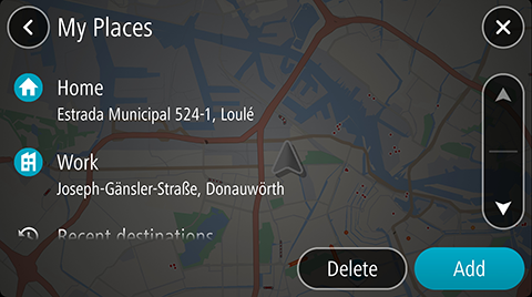 To navigate to one of My Places from your current location, do the following: