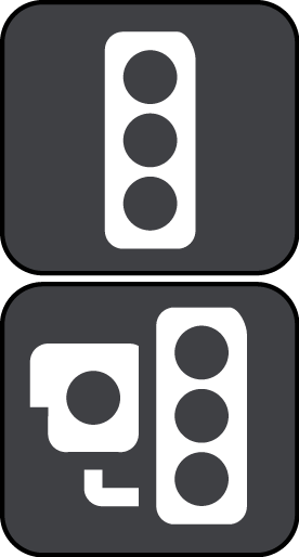 Speed enforcement zones - these zones can contain multiple safety cameras. You are warned at the start and end of a speed enforcement zone. While you are driving in a speed enforcement zone, your current speed is shown, and a visual warning is shown in the route bar. |