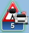 Localização provável de radares móveis. O utilizador é avisado sobre localizações prováveis de radares móveis apenas quando tem o serviço Radares de trânsito. Estas são zonas onde se verificaram muitas comunicações de utilização de radares móveis. |