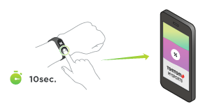 Swipe to two screens above the clock screen of your fitness tracker, where you see a percentage sign. Press and hold the button until you see a tick mark on the screen. You can now view your body composition reading in the mobile app by going to the Progress menu, tapping the grey graph button (top right hand side) and selecting Body.
