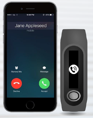 When you receive a call, your TomTom Touch vibrates and a call icon appears to show you that you have a call. You can swipe down to dismiss the icon or ignore it.