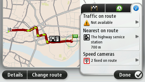 Si vous disposez de TomTom Traffic ou d'un récepteur RDS-TMC, le récapitulatif du parcours affiche également les infos trafic relatives aux retards sur votre parcours.