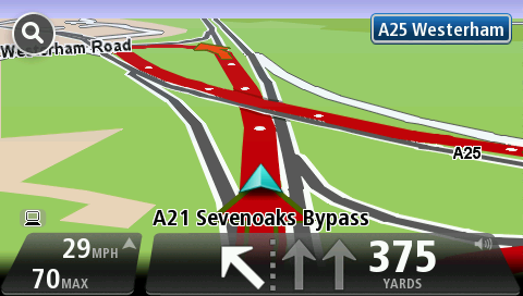 Tipp: Um zur Fahransicht zurückzukehren, tippen Sie auf eine beliebige Stelle am Display.