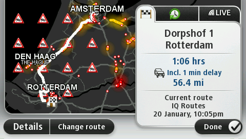 Si vous disposez de TomTom Traffic ou d'un récepteur RDS-TMC, le récapitulatif du parcours affiche également les infos trafic relatives aux retards sur votre parcours.