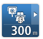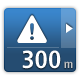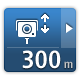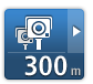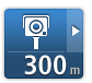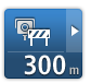 As you approach a camera, you see a symbol showing the type of camera and the distance to the camera. A warning sound is played. You can change the warning sound for cameras or turn warning sounds on and off for each type of camera.