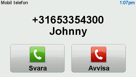 Namnet på den uppringande och dennes telefonnummer visas när någon ringer. Tryck på skärmen för att ta emot eller neka samtalet.